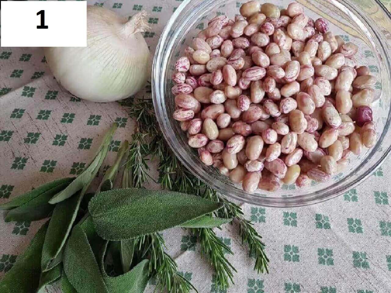 Passaggi 1 / 2) Per prima cosa prendete i fagioli borlotti e lavateli sotto acqua corrente, e metteteli in una ciotola da parte.