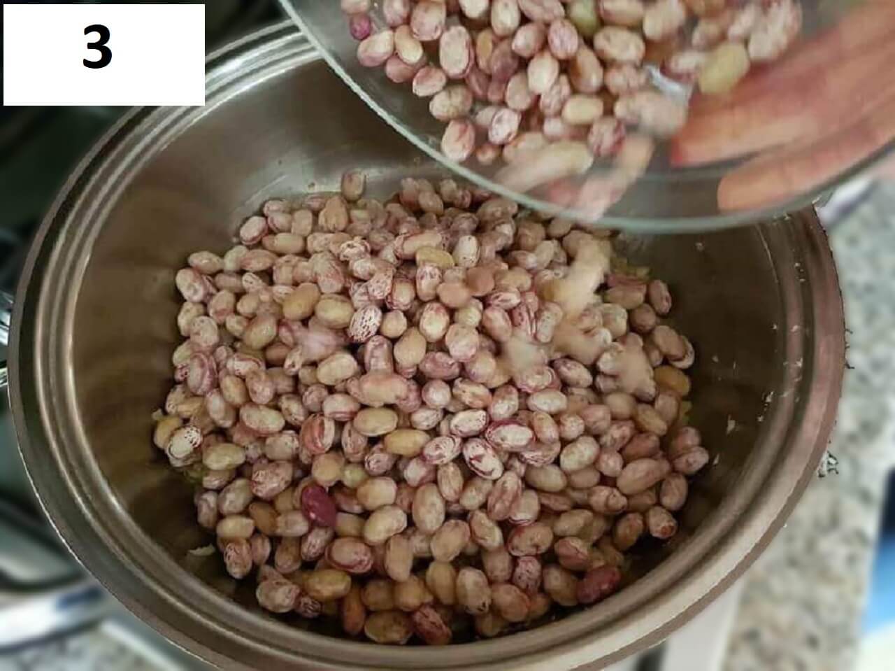 Continuate la cottura fino a quando la buccia dei fagioli si ammorbidisce, ma che comunque il fagiolo resti intatto.