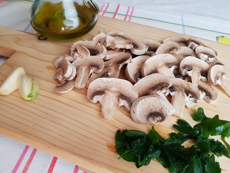 Nel preparare questa Ricetta semplice e veloce utilizzo Funghi Champignon, aglio, olio extra vergine di oliva, sale pepe, e del prezzemolo.