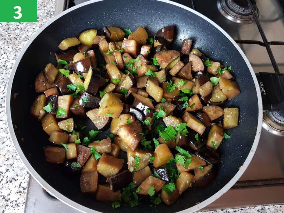 Passaggio 3 ) A fine cottura, spegnete il fuoco e aggiungete il prezzemolo fresco tritato e mescolate. Servite le melanzane a funghetto calde oppure fatele raffreddare e servitele a temperatura ambiente.