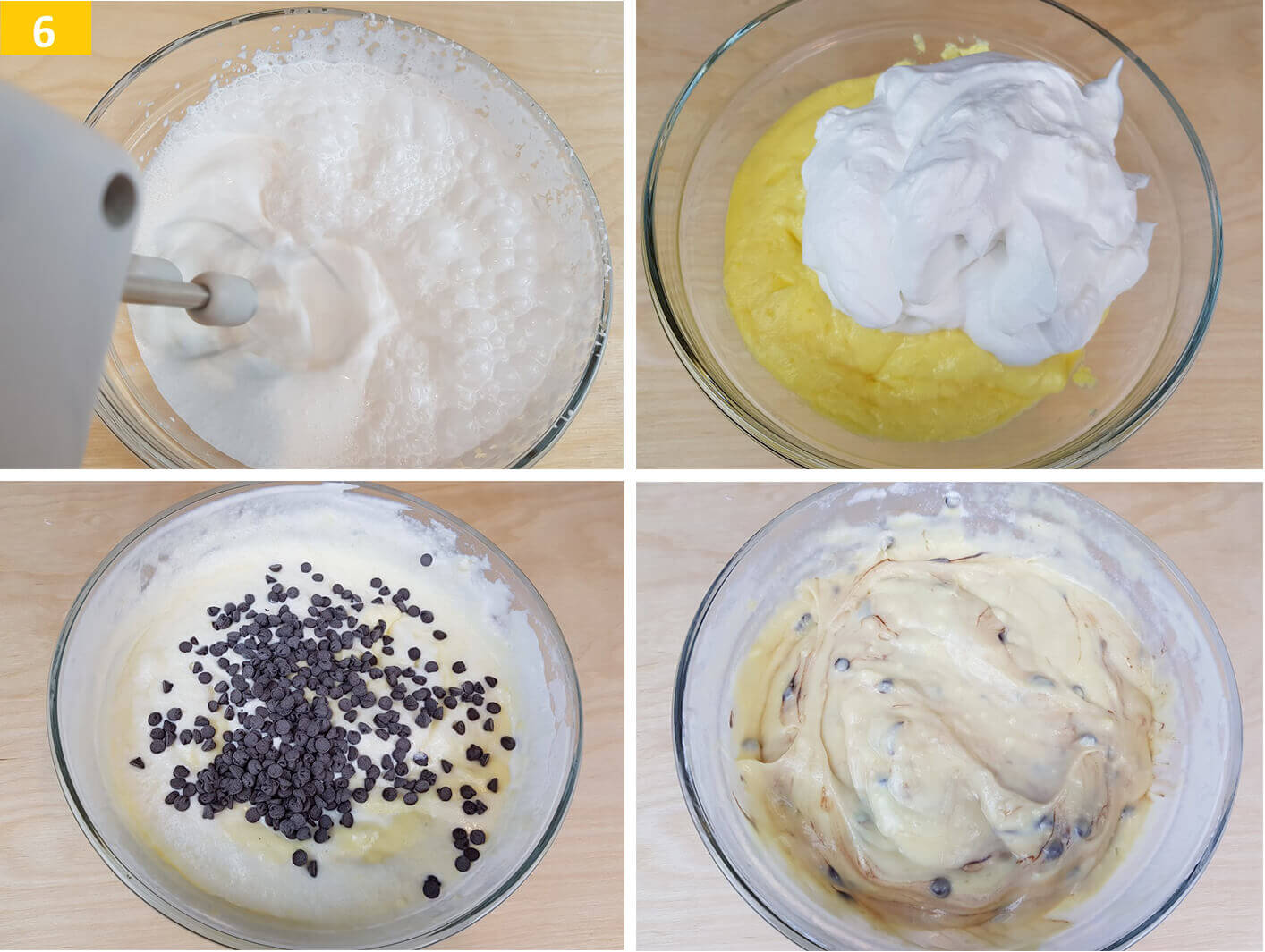 Passaggio 6 ) A questo punto montate la panna. Incorporate la panna montata alla crema diplomatica e le gocce di cioccolato.