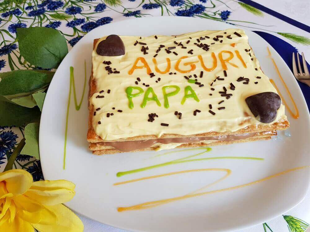 La Torta Millefoglie con Crema di Mascarpone e Cioccolato, l’ho preparata in occasione della festa di compleanno di mio papà.