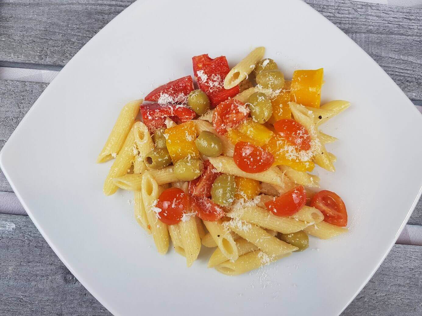 Quando la preparo metto Pomodorini, Peperoni Gialli e Rossi, tutte Verdure Fresche di Stagione del mio Orto, aggiungo anche delle Olive Verdi denocciolate. Si tratta infatti di un piatto versatile, realizzabile con un mix di verdure che più preferite, come carote, zucchine,melanzane da aggiungere al piatto grigliate, saltate in padella oppure crude a cui potete aggiungere se volete del formaggio morbido in pezzi o prosciutto, in modo così di adattarla ai gusti personali e alle diverse occasioni.