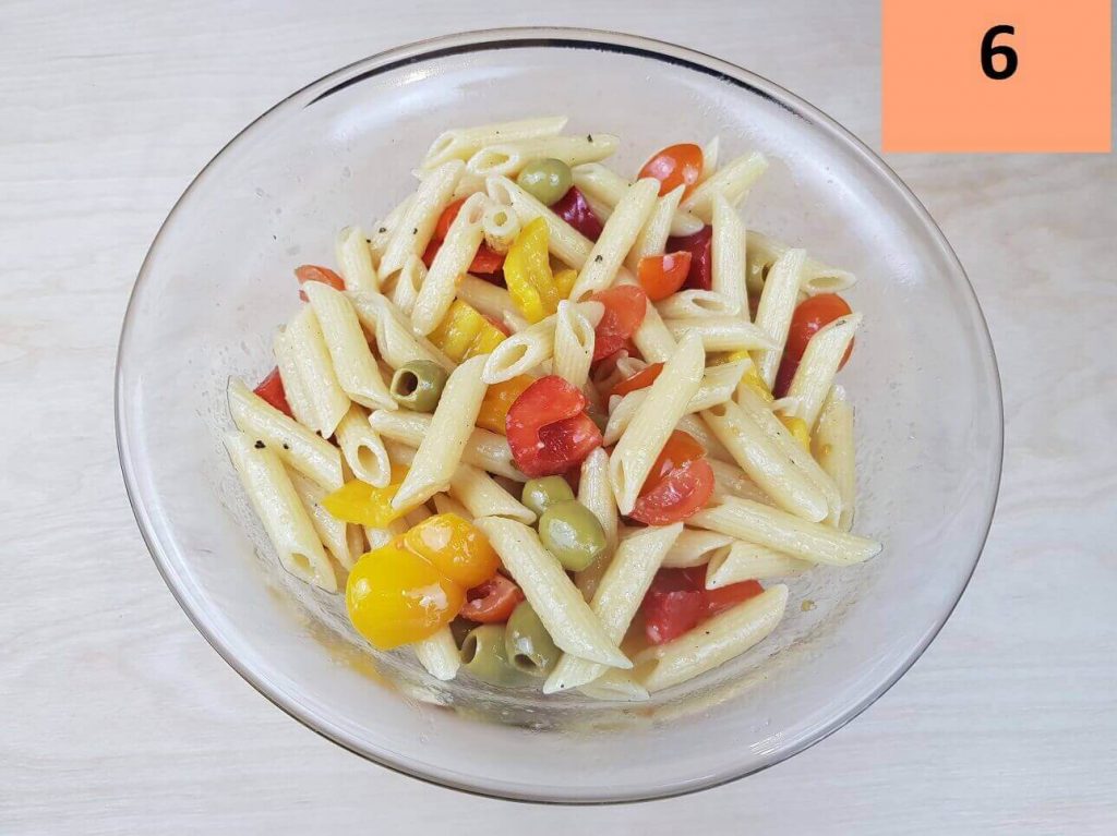 Il bello di questa Insalata di Pasta con verdure è che il condimento si può preparare in anticipo, va lasciato riposare in frigo in modo che prenda più gusto, inoltre la Pasta non va lasciata raffreddare ma scolata e unita con il condimento.