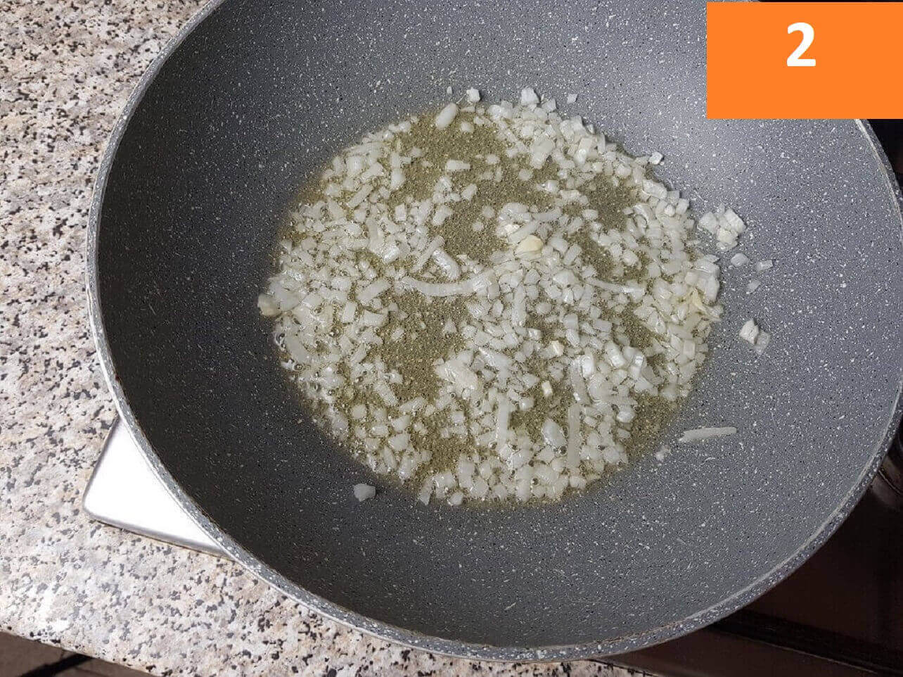 Passaggi 1 / 2) Per preparare gli spaghetti al tonno iniziate a tritare la cipolla, mettetela in una padella con l’olio evo, e fate rosolare.