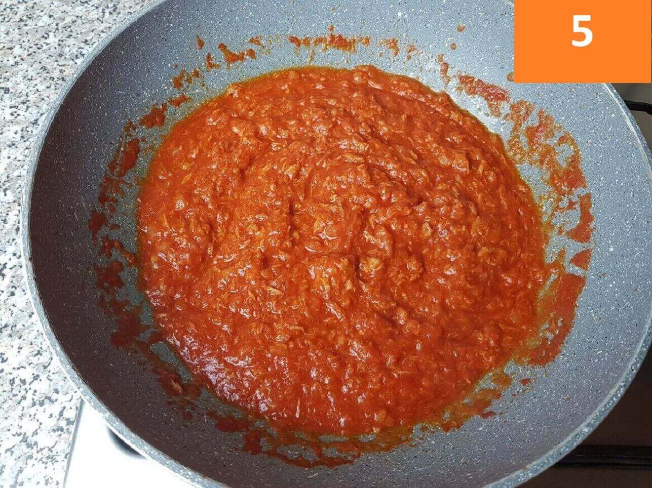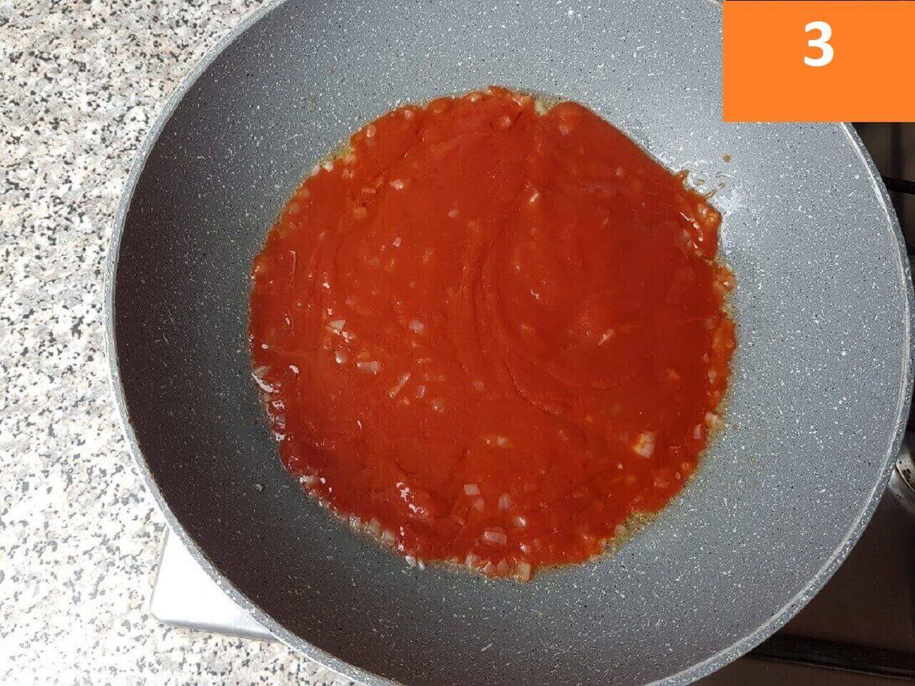Passaggi 3 / 4 / 5) Aggiungete la passata di pomodoro, e lasciate cuocere a fuoco basso per circa 15 minuti coprendo con un coperchio.