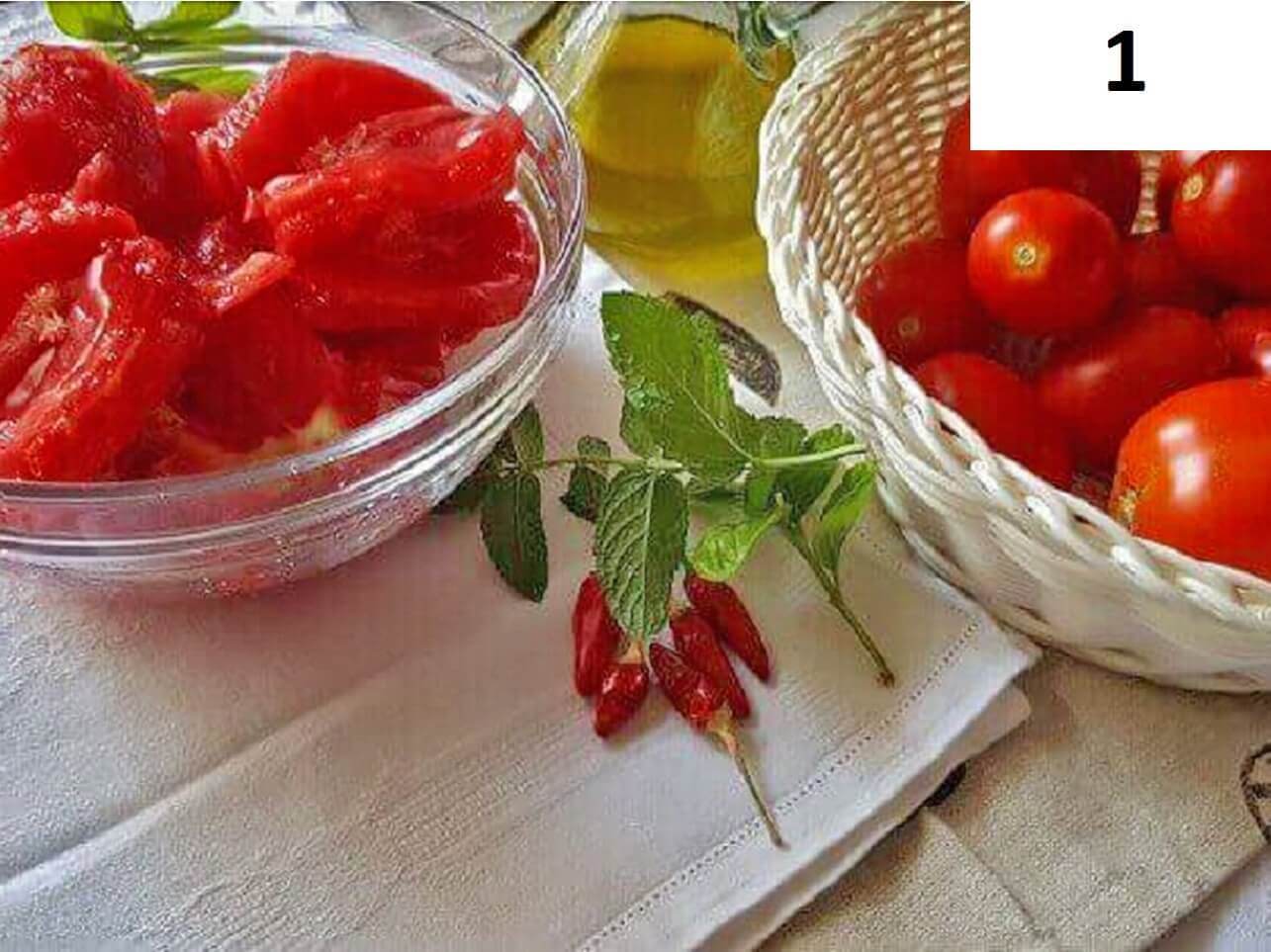 Passaggi 1 / 2) Lavate i pomodori sotto acqua corrente, pelateli con un coltello, tagliateli a metà e lavate sotto acqua corrente i semi.