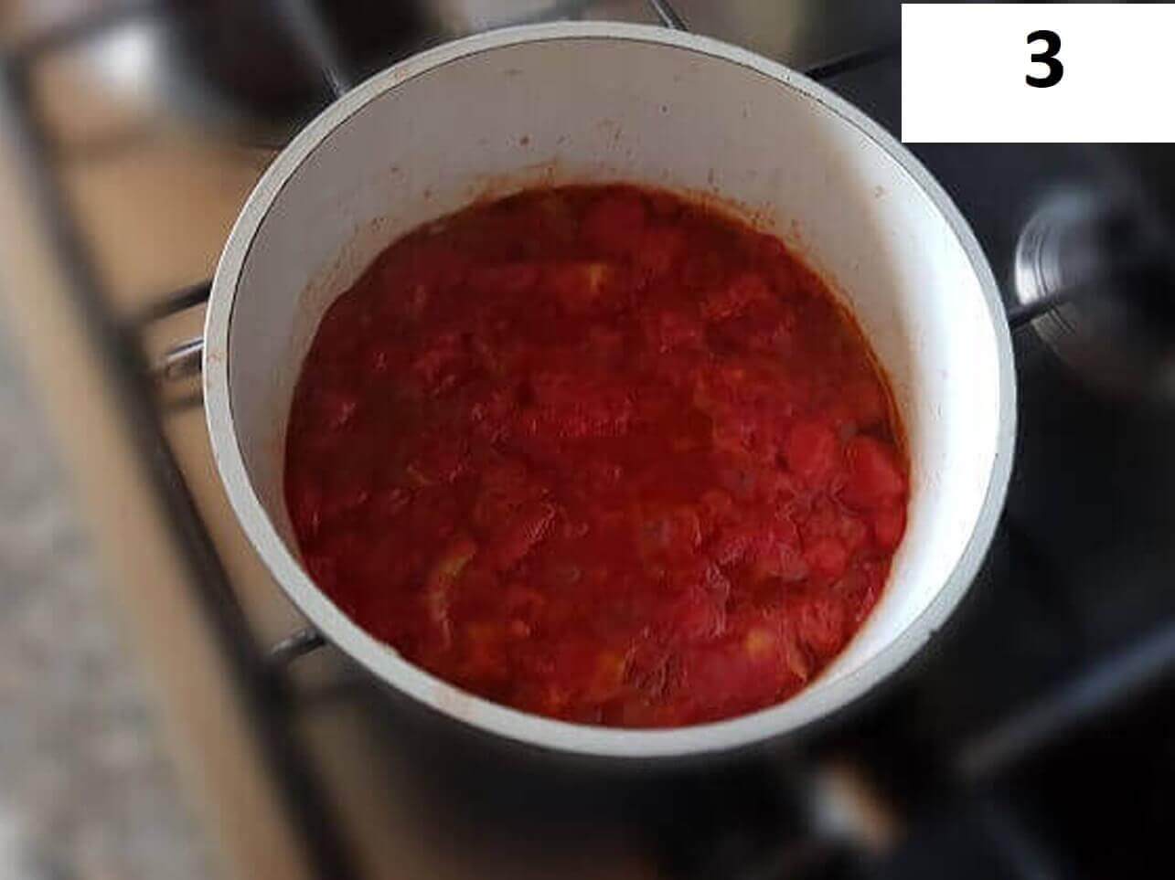 Passaggi 3 / 4) Una volta rosolata un po’ la cipolla unite il pomodoro e cuocete a fiamma media girando di tanto in tanto per 45-50 minuti fino a quando diventa bello corposo.
