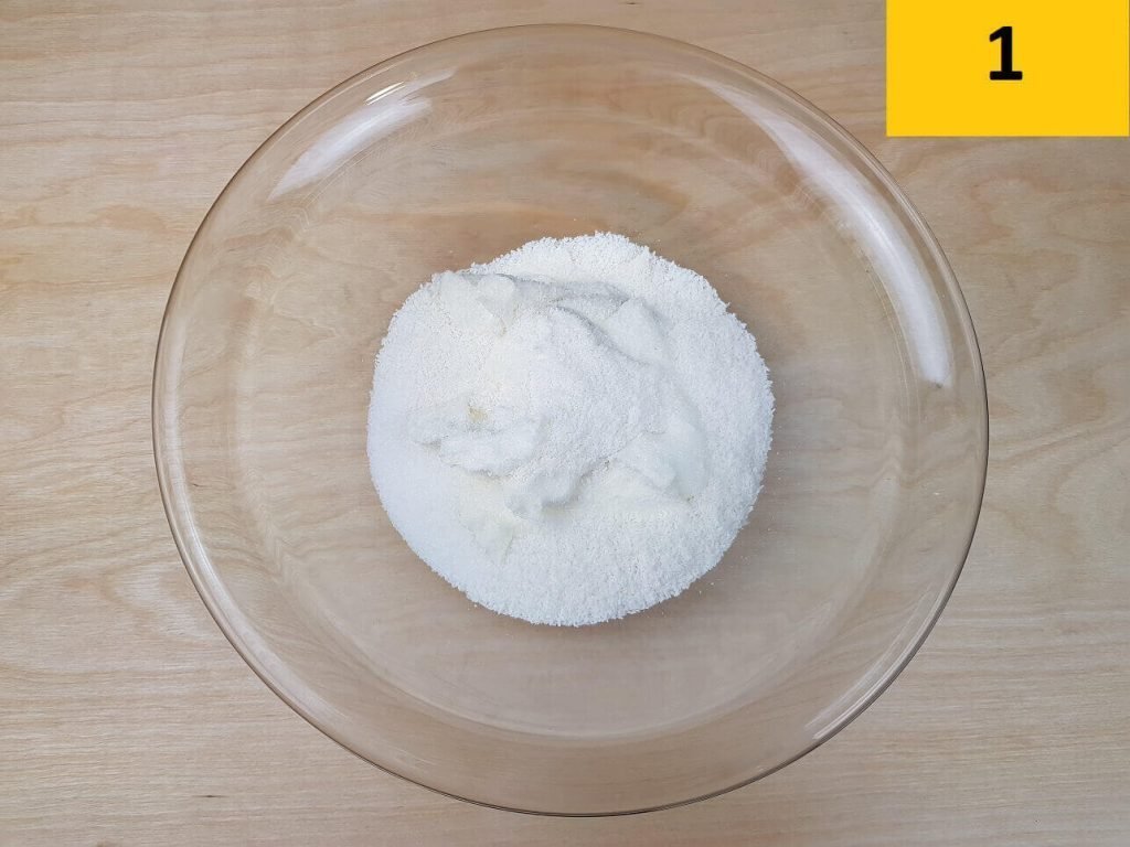Passaggi 1 / 2) La prima cosa da fare, preparate la crema di mascarpone. Mettete in una ciotola capiente il mascarpone, lo zucchero, e la farina di cocco, mescolate bene fino ad ottenere una crema omogenea.