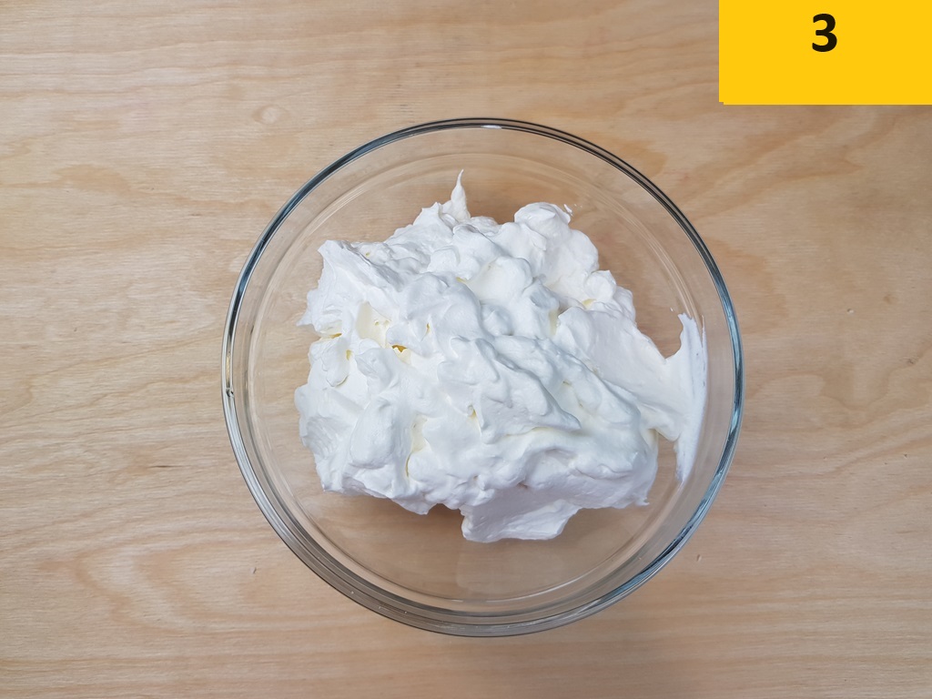 Passaggi 3 / 4) Montate la panna e unitela al mascarpone  e cocco, mescolando delicatamente dal basso verso l’alto. Nel frattempo ammorbidite la nutella qualche secondo al microonde.