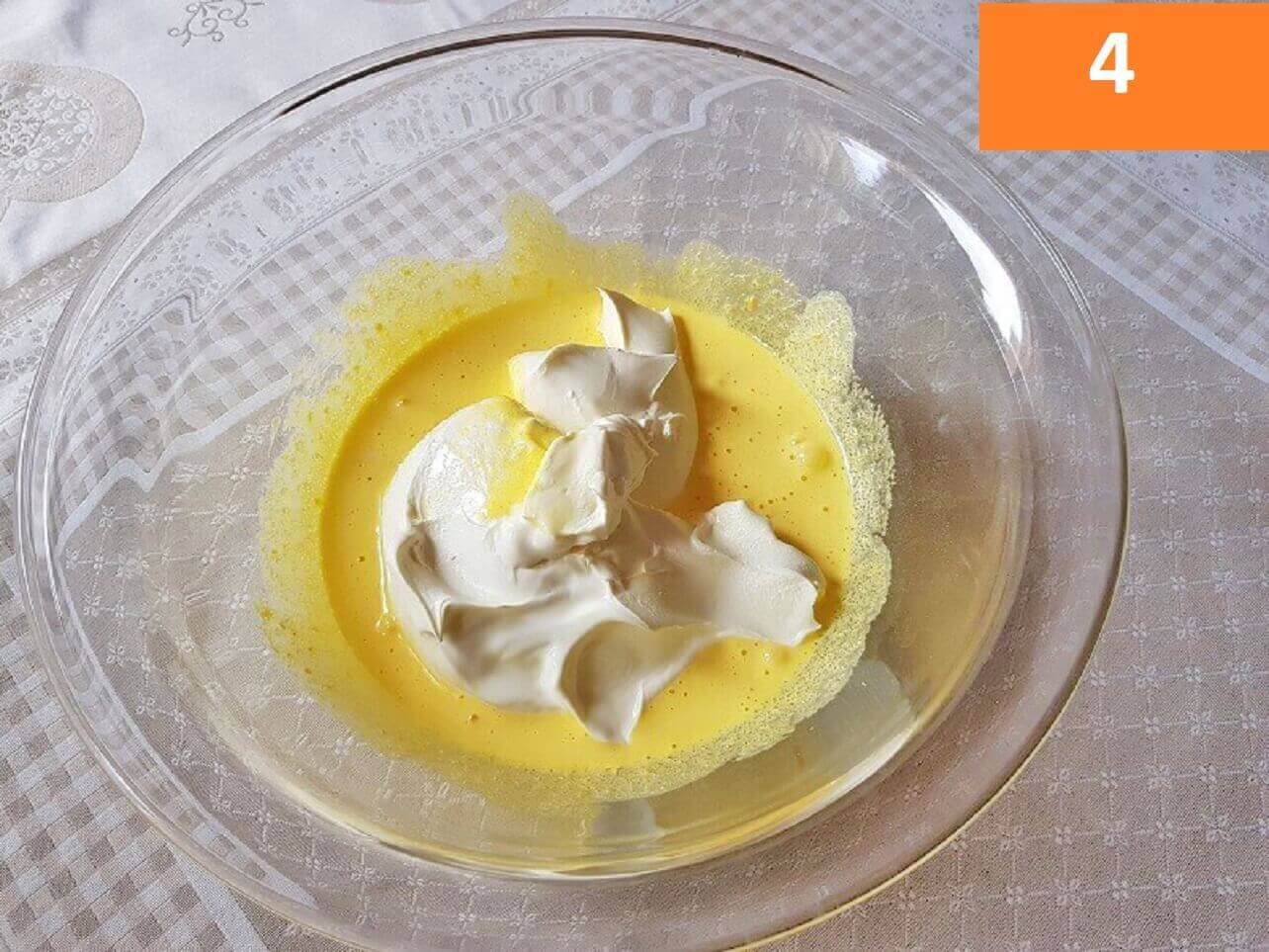 Passaggi 1 / 2 / 3) Preparate la crema di mascarpone, dunque unite i tuorli d’uovo con lo zucchero e mescolate fino ad ottenere un composto liscio e spugnoso. Nel frattempo preparate anche i bianchi a neve da unire dopo.