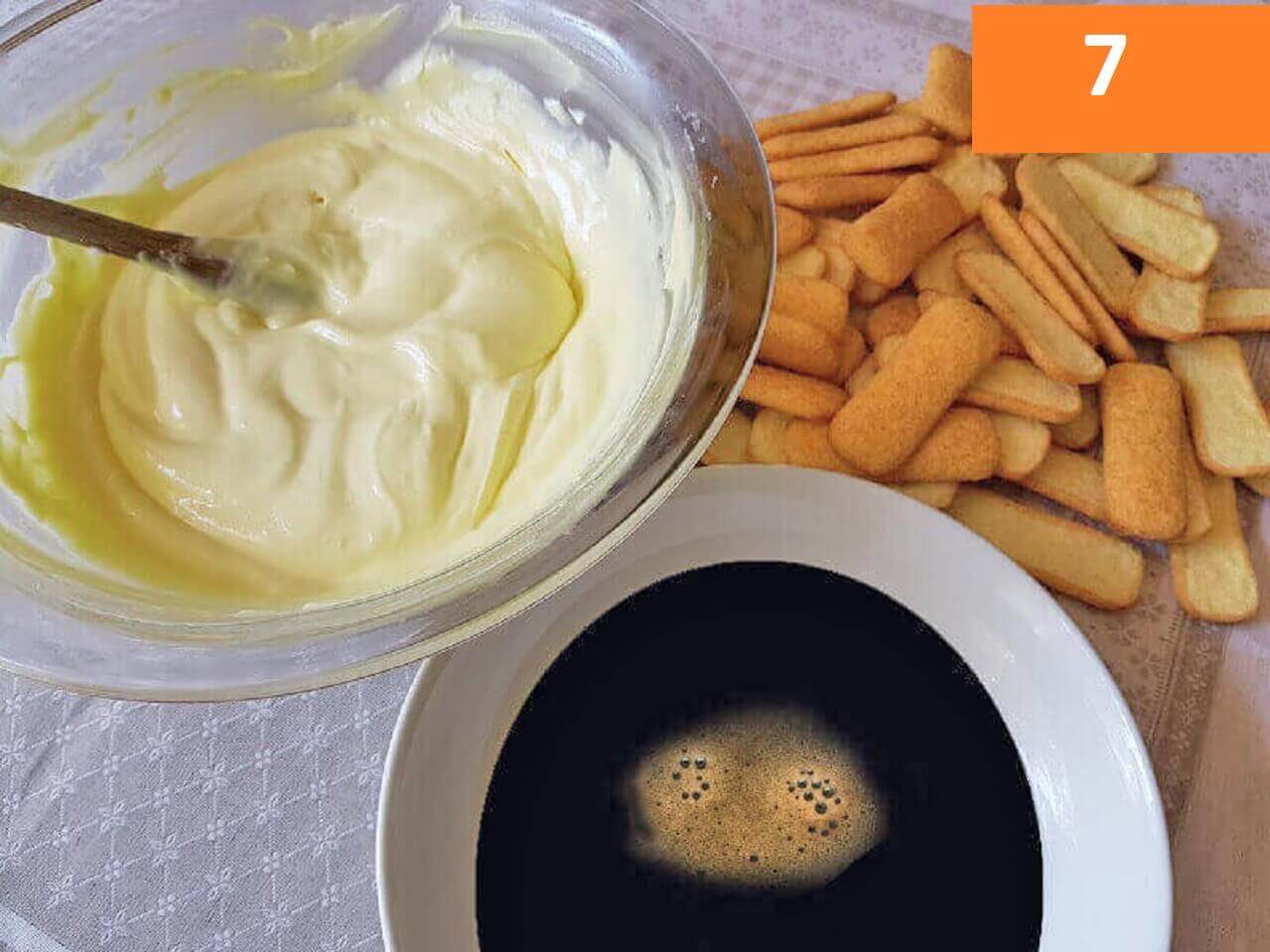 Inzuppate appena i pavesini nel caffè per evitare che si sfaldino, e posizionateli in una tortiera in modo da formare il primo strato.