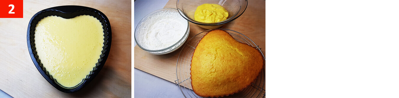 Imburrate uno stampo a forma di cuore, versate il composto, e infornate a 180° per 35 minuti