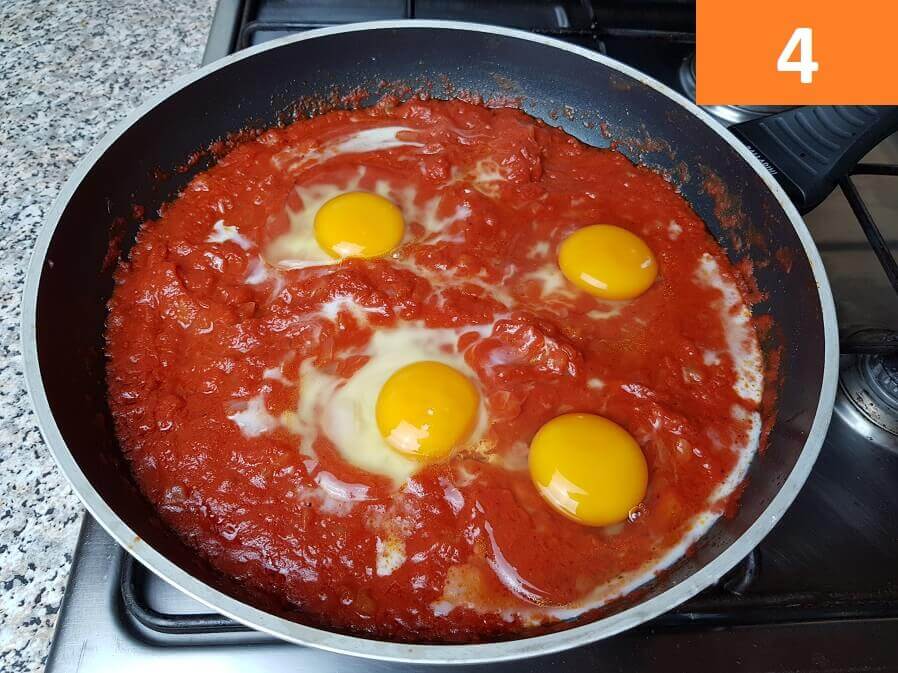 Preparare questo piatto è molto semplice, ti basta prendere una teglia e mettere a soffriggere la cipolla con l’olio extravergine di Oliva, aggiungere prima il pomodoro e poi rompere le uova direttamente nel tegame sopra il sugo, dopodichè ti basterà cuocere a fuoco lento per alcuni minuti.